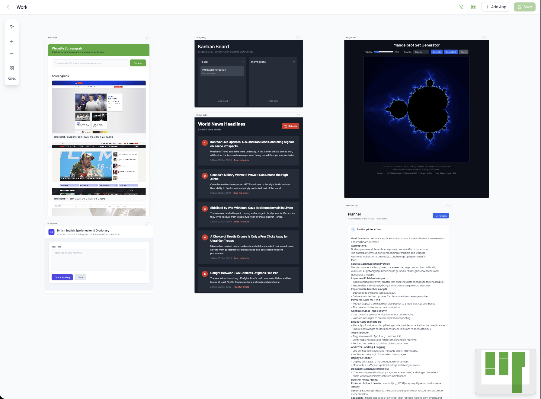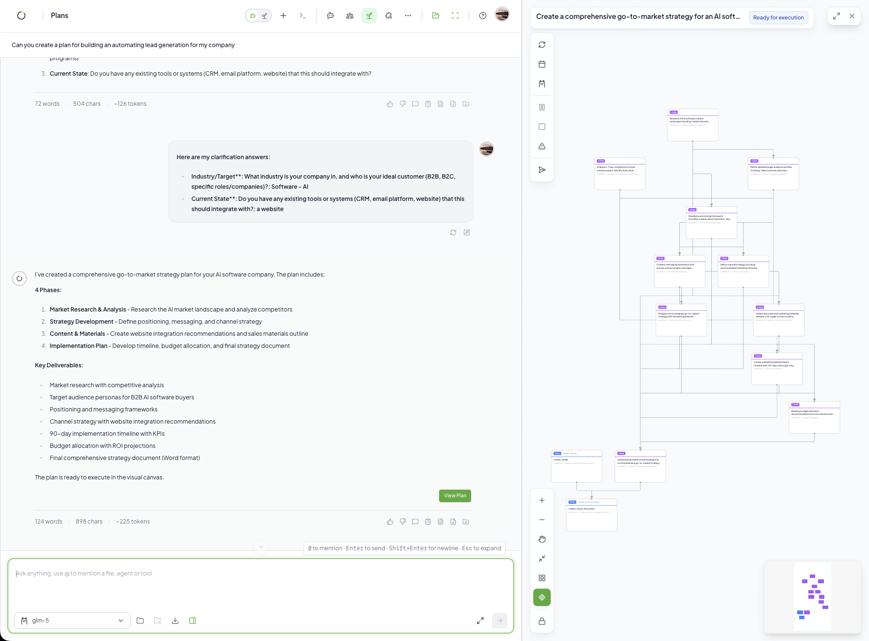 Now, I realise the irony: I've spent this entire piece arguing that apps are dissolving, and now I'm about to show you screenshots of... apps. Rough, unpolished, sometimes trivial-looking widgets. But that's the nature of building in this moment. The outcomes I want from the software I'm creating often require me to build more software. Among the screenshots you'll see below are a Board of "apps", a go-to-market strategy plan, a screenshot of an Odokai model being used through Odokai to build Odokai itself. They're not meant to be impressive as artefacts. They're meant to show the exploration of what's possible when software becomes a means, to an outcome. Odokai built 12 mini apps in just under 30 minutes, It created the go to market plan in less than 90 second and executed it in less than seven minutes with full output and it formed one side of the agentic argument I mentioned above.